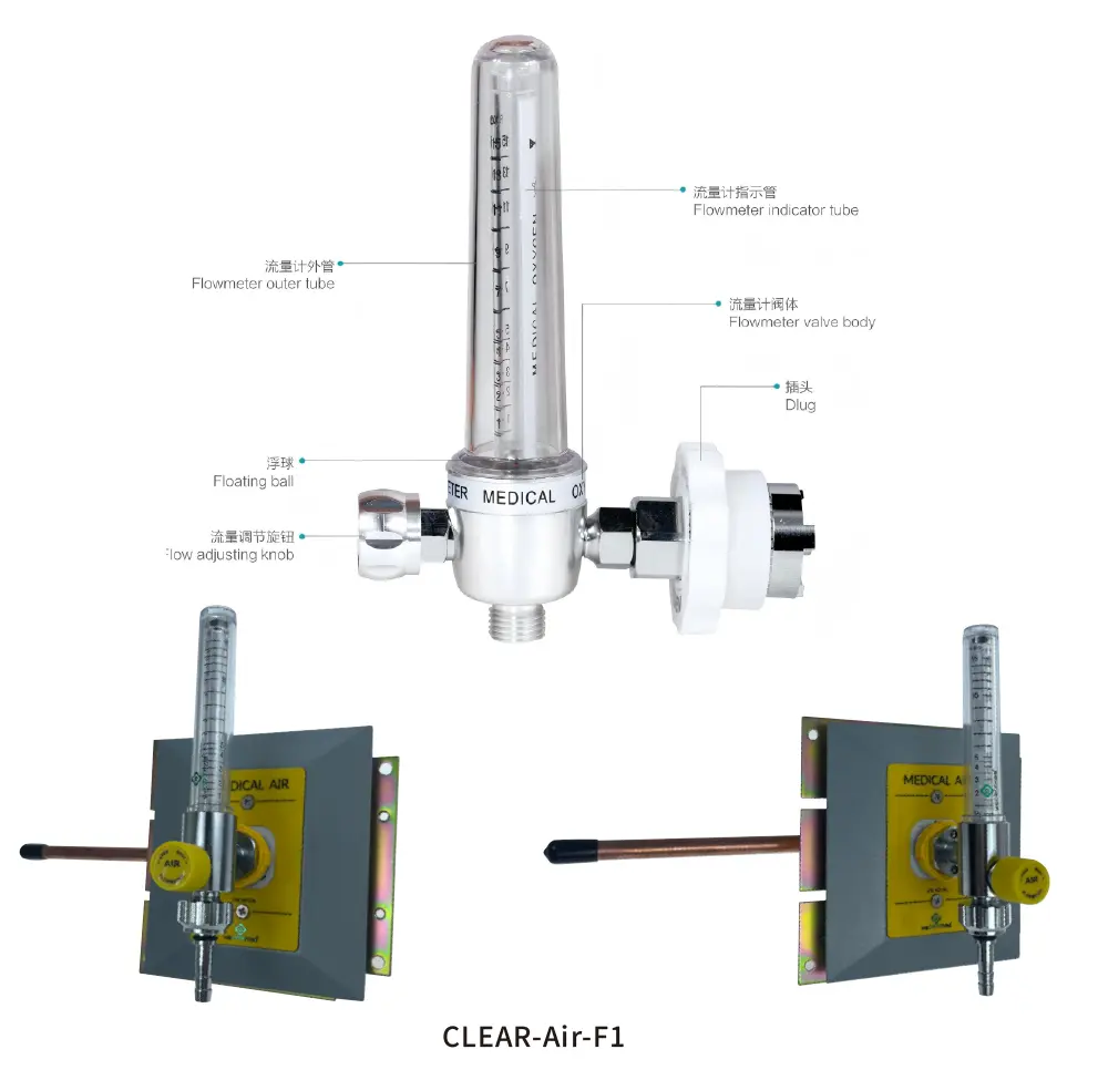 2. Flowjusteringsknap: Adiust Flow let, luk strømmen uden iltudgang: 0,35 ± 0,05MPa